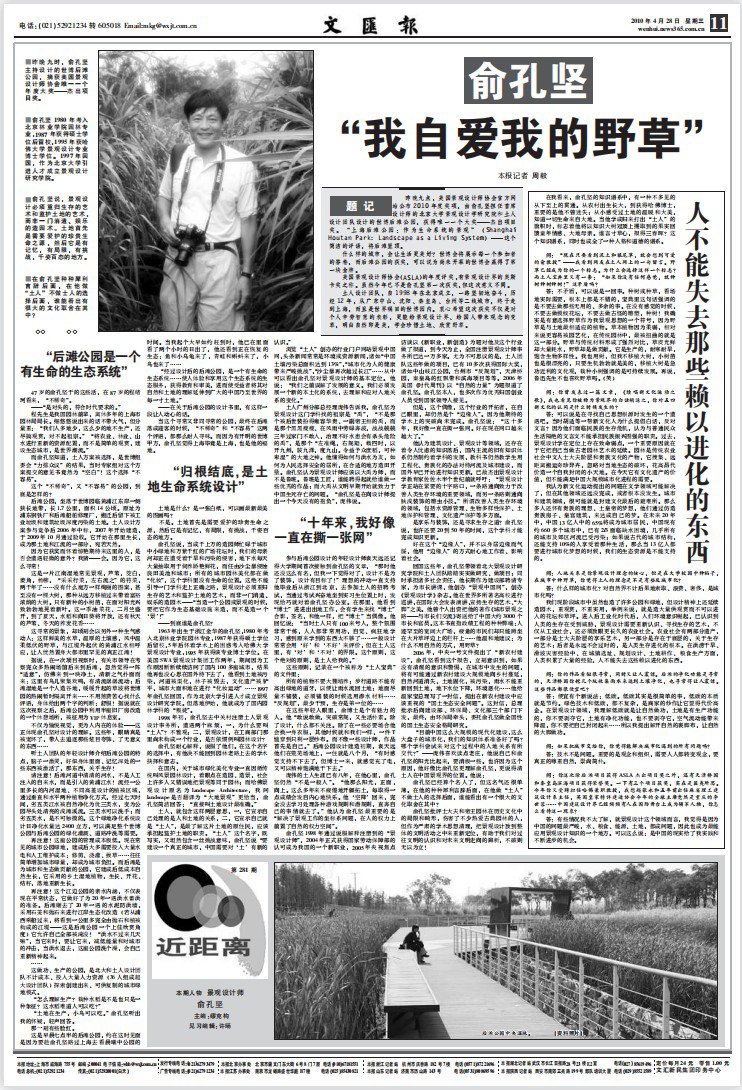 巴西当地时间9月23日,北京大学建筑与景观设计学院俞孔坚教授不幸遭遇坠机身亡,终年62岁。 据悉,俞孔坚教授此行是在潘塔纳尔地区拍摄纪录片《海绵星球》,其乘坐的小型飞机在南马托格罗索州潘塔纳尔地区的阿基道阿纳市坠毁,无人生还。俞孔坚,1963年生,浙江金华人。1987年获北京林业大学园林专业硕士学位,1995年获哈佛大学设计学博士学位,1997年回国后先后创办了北京大学建筑与景观设计学院并担任首任院长,创办了国际获奖期刊《景观设计学》并任主编,并创办了国家甲级设计机构土人设计Turenscape。2012年他当选美国景观设计师协会会士(ASLA Fellow);2016年当选美国艺术与科学院院士;2020年获世界风景园林联合会授予的最高荣誉——IFLA杰弗里・杰里科爵奖,表彰其“为改善社会和人居环境、提高人类福祉作出了杰出而意义深远的贡献,并有力推动了学科和行业的发展”;2021年获世界生态哲学领域和生态文明领域的最高奖“柯布共同福祉奖”(John Cobb Common Good Award)。2023年获Cooper Hewitt美国国家设计奖;同年,俞孔坚从全球300多位被提名者中脱颖而出,获得世界景观设计和风景园林设计界的最高奖、两年一位的奥伯兰德奖( Oberlander Prize),表彰其 “非凡才华、创造力和勇气,富有远见并完成大量城乡环境建成作品”。他曾分别被中央组织部、中央宣传部、中央统战部联合授予“留学回国人员成就奖 ”,被国务院侨办授予“首届华侨华人专业人士杰出创业奖”。俞孔坚把城市与景观设计视作“生存的艺术”,他的理论研究、教学及实践促进了景观设计师成为国家正式认定的职业,并推动了景观设计学科在中国的确立。他的代表作品有广东中山岐江公园、河北秦皇岛红飘带公园、哈尔滨群力湿地公园等。现重发旧文《俞孔坚“我自爱我的野草”》(刊于《文汇报》2010年4月28日),寄托哀思。