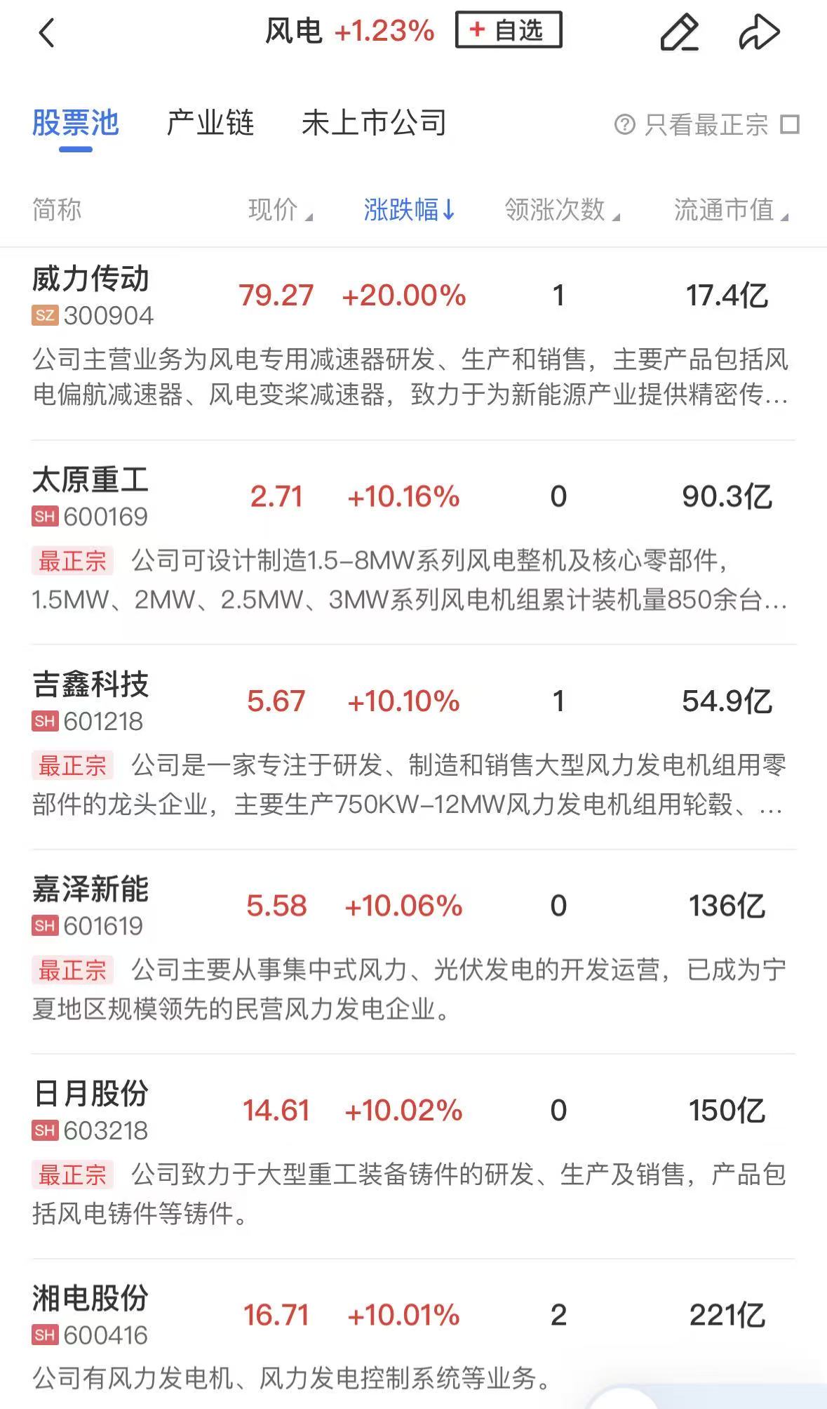 板块上,风电板块延续强势,威力传动、吉鑫科技、日月股份、明阳智能等涨停,天能重工、天顺风能、双一科技等个股涨幅居前。