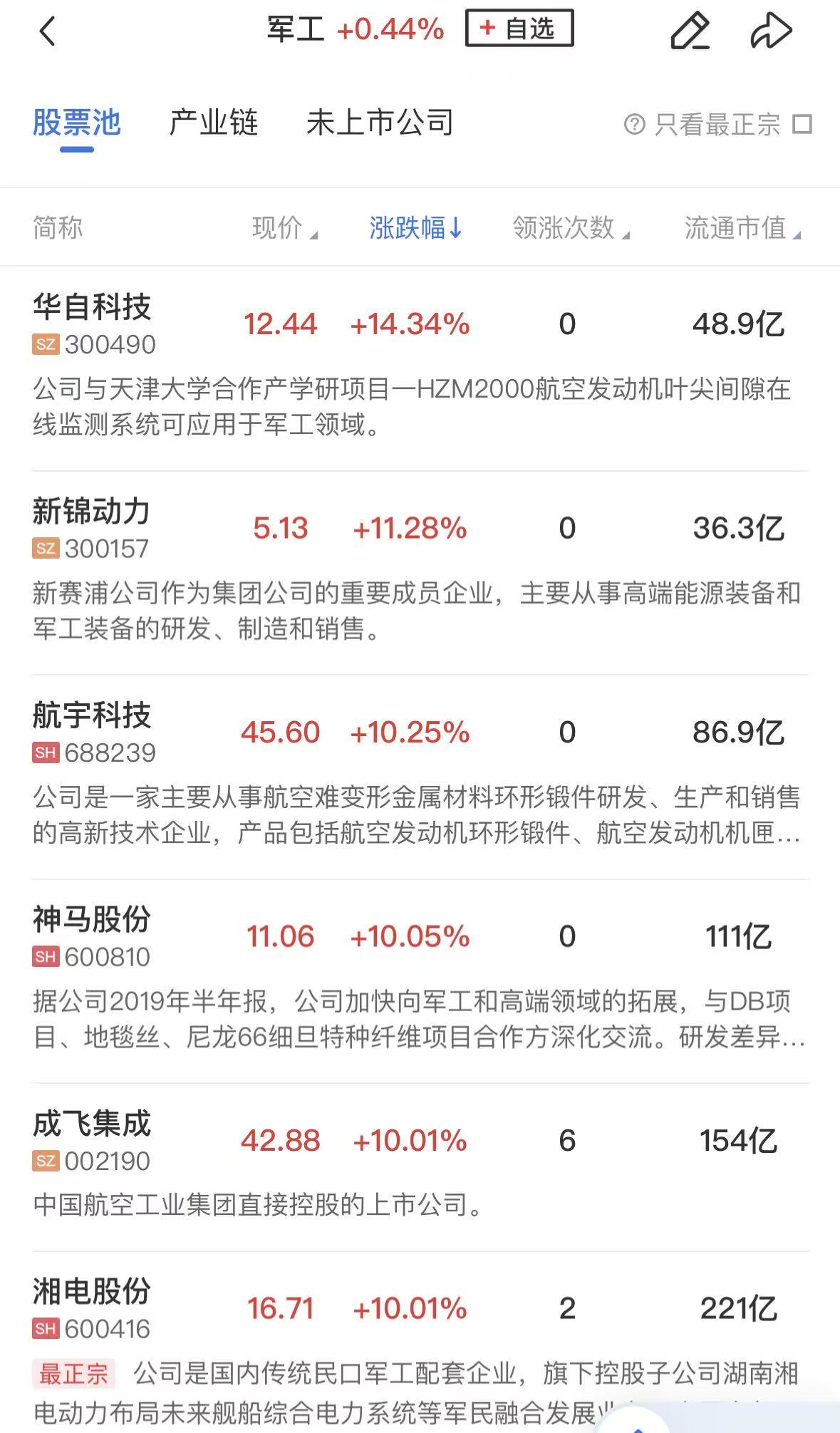 军工板块展开反弹,航宇科技涨超10%,航亚科技、北方长龙、理工导航、航发动力等个股涨幅居前。