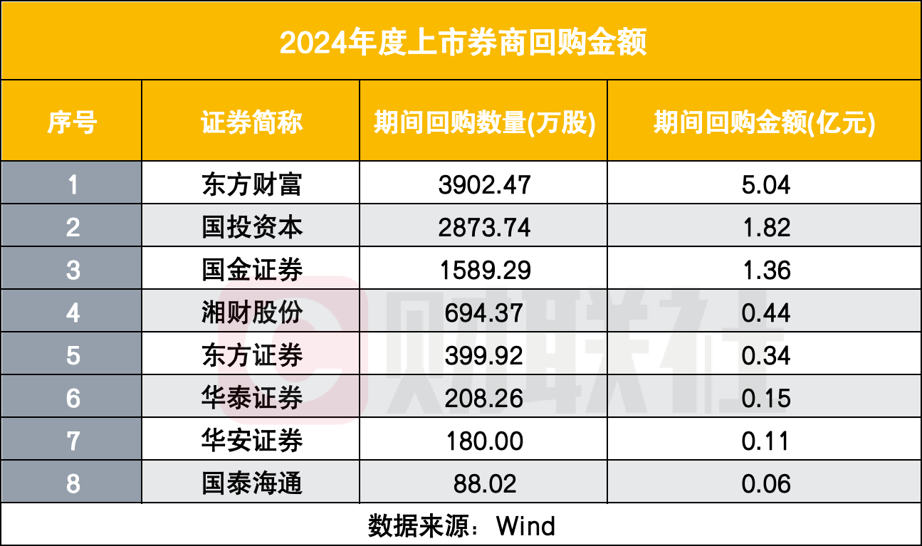 股份回购作为券商回报股东、稳定股价的重要手段,在2024年度受到部分券商的高度重视。根据统计数据显示,2024年度共有8家券商实施了股份回购计划,涉及回购数量与金额各有差异,其中东方财富以显著优势成为年度回购“主力军”。