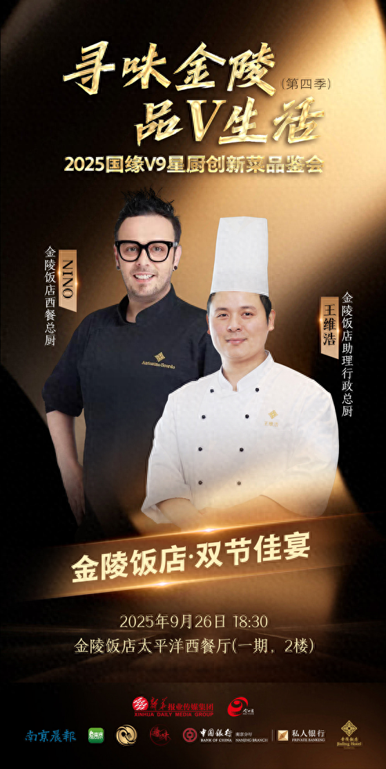 9月26日晚,金陵饭店太平洋西餐厅内,一场融合传统匠心与国际视野的美食艺术盛宴——“寻味金陵·品V生活(第四季)2025国缘V9星厨创新菜品鉴会”如期而至。此次活动由新华报业传媒集团、江苏今世缘酒业股份有限公司联合主办,南京晨报、《寻味》栏目承办,并得到了中国银行南京分行与金陵饭店的鼎力支持。