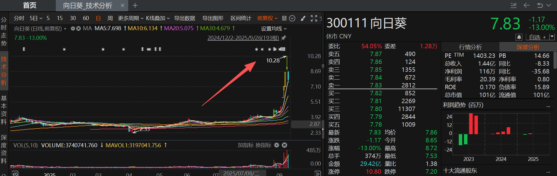主营业务是抗感染类、心血管类等药物生产的向日葵年内迄今股价累计最大涨幅为341.2%。向日葵9月11日公告,公司拟以发行股份及支付现金的方式购买漳州兮璞材料科技有限公司100%股权、浙江贝得药业有限公司40%股权并募集配套资金。兮璞材料主要从事高端半导体材料的研发、制造与销售,主要产品包括半导体级高纯度电子特气、硅基前驱体、金属基前驱体等,广泛应用于半导体制造过程中的扩散、蚀刻、薄膜沉积等关键工艺环节。贝得药业作为向日葵的控股子公司,主要从事抗感染类、心血管类、消化系统类等药物的研发、制造和销售。