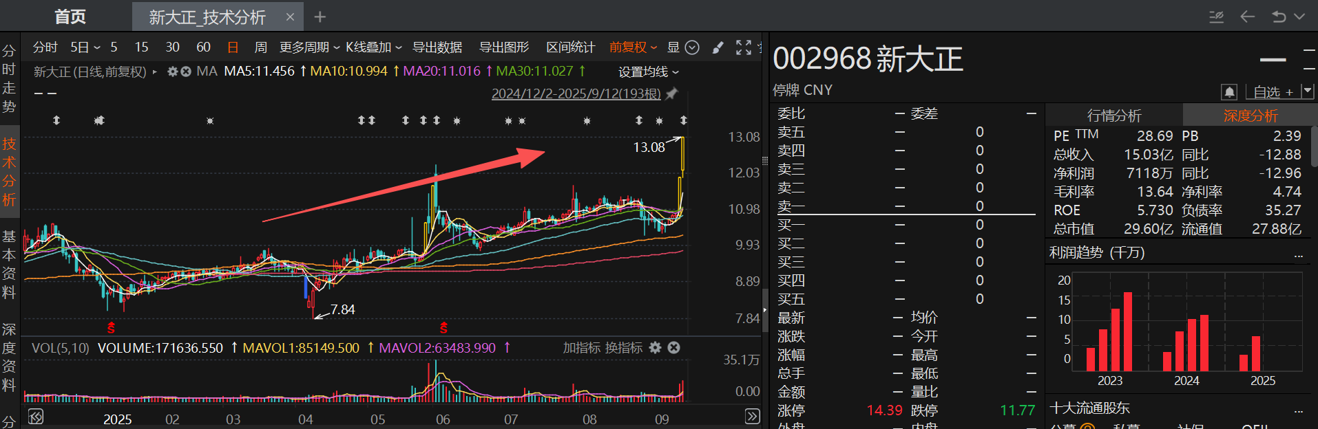 主营业务是智慧城市公共建筑与设施的运营和管理的新大正年内迄今股价累计最大涨幅为66.84%。新大正今日披露重大资产重组预案,公司拟通过发行股份及支付现金的方式,取得嘉信立恒设施管理(上海)有限公司(简称“嘉信立恒”)75.15%股权,并拟向不超过35名特定对象发行股份募集配套资金。此次交易的价格尚未确定。嘉信立恒主营业务为综合设施管理服务,主要服务于各类工商业客户,核心业务聚焦于驻场综合设施管理、绿色能源管理、大型活动安保。新大正表示,此次交易完成后,公司将进一步拓展业务辐射范围,显著提升在华东长三角区域、华北环渤海湾区域、华南大湾区区域和华西成渝经济带的业务比重。公司证券将于2025年9月29日(星期一)开市起复牌。