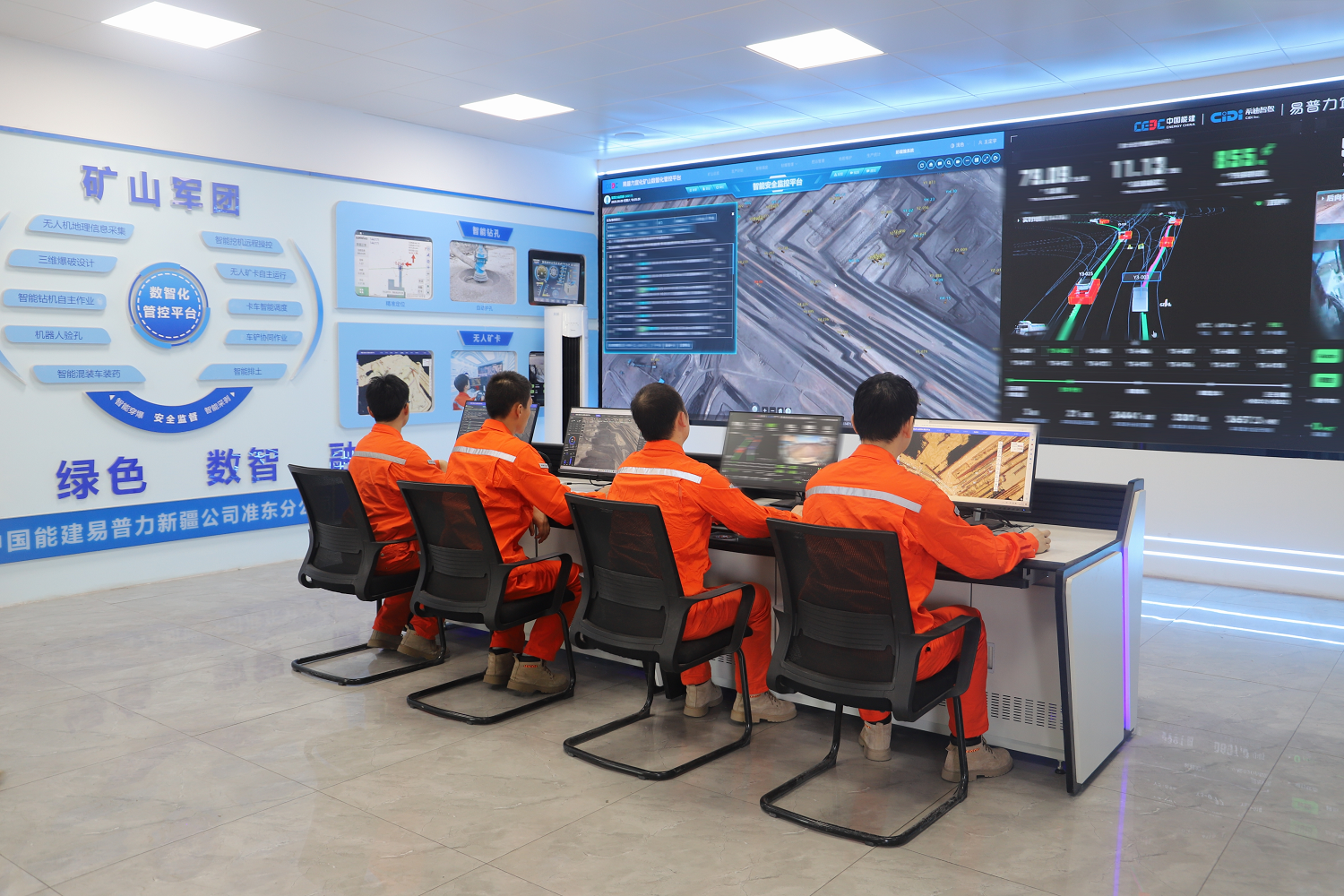 同样的地方,现在却大不一样。走进宜化五彩湾露天煤矿,头顶无人机翱翔,在操作人员的远程指挥下开始数据采集,随后数据将被上传至三维爆破设计软件,软件内置300余套地理坐标系和投影坐标系,可供精准完成爆破设计。地面的无人钻机,在参数导入后自动开始作业。一辆辆无人矿卡的方向盘自动旋转,带动车辆有序运行,而负责“驾驶”调度他们的人员,则坐在几公里外的控制室里……据悉,中国能建易普力新疆公司承揽的10座矿山,均已高分通过自治区中级智能化达标验收。