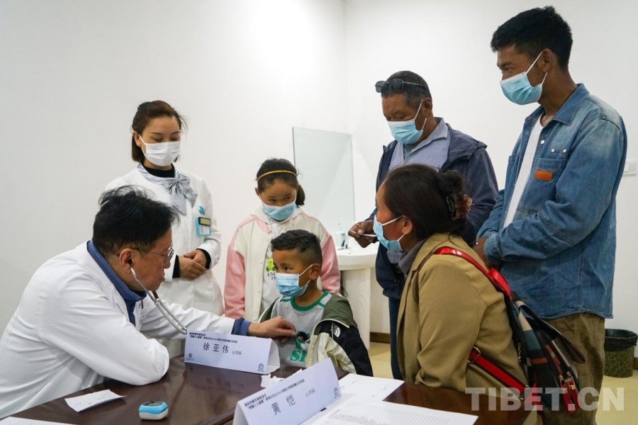 资料图:援助西藏发展基金会“西藏人人健康”义诊活动中来自上海市第十人民医院心内科主任徐亚伟教授为西藏小朋友听诊筛查 摄影:赵振宇
