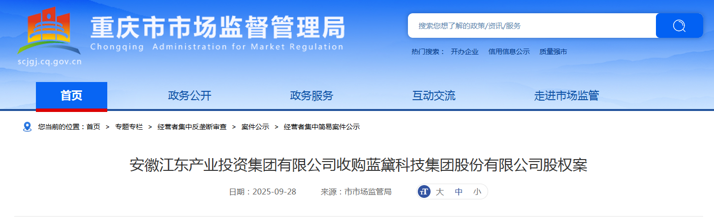 安徽江东产业投资集团有限公司收购蓝黛科技集团股份有限公司股权案