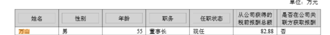 2024年年报显示,万山去年从公司获得的税前报酬总额为82.88万元。