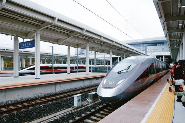 正午时分,雨势渐歇。长白山站又一列复兴号高铁列车缓缓驶出站台,穿越层林驶向远方;G331公路上,首支自驾车队打着双闪有序前行,车窗外的长白余脉在晴空下渐露真容。“钢铁巨龙”与山间公路在林海中相映成趣,一条连接南北的快速动脉与一条贯通沿边的旅游长廊,共同在吉林全面振兴的画卷上写下崭新一笔。