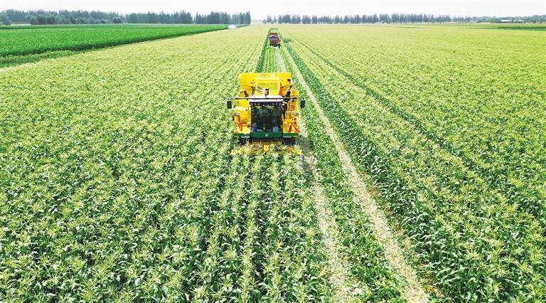 甘肃农垦黄羊河农场机械化采收甜糯玉米。管俊峰