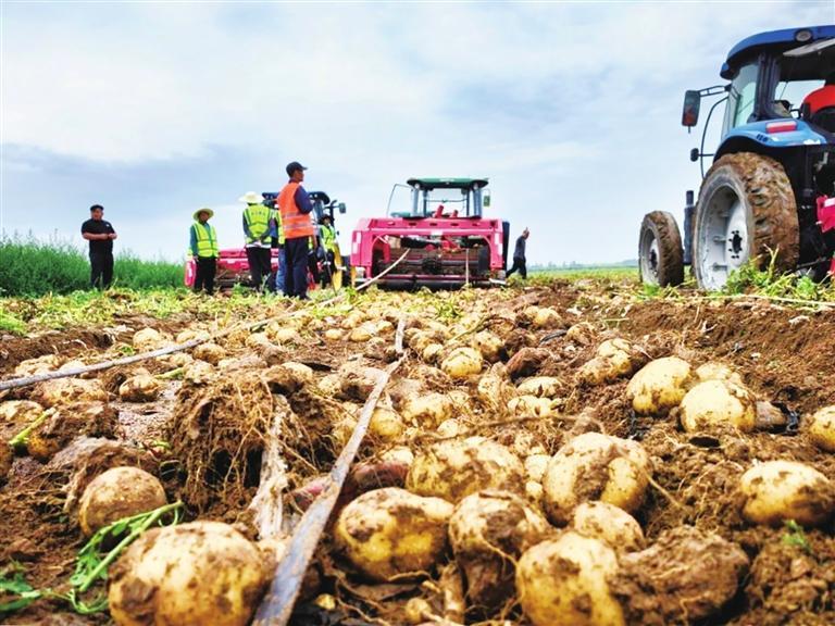甘肃农垦条山农场马铃薯机械化收获。李娜