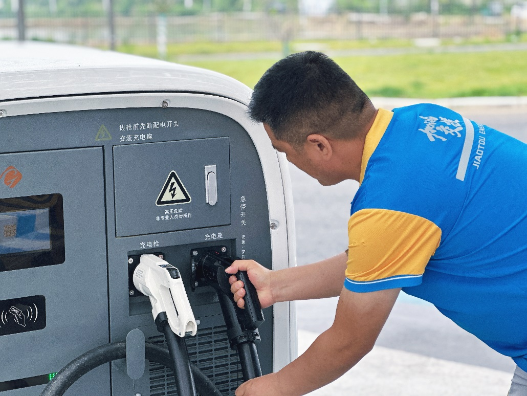 10月2日10时许,S53湖北省枣(阳)石(首)高速公路江陵服务区人来车往,在充电站内,自驾新能源车出行的刘先生围着充电桩手足无措,现场管理员罗雅莉上前接过充电枪说:“师傅,我来帮您,用手机扫码后选择‘即插即充’就可以了……”几句简单的话语,让充电也有了温度。