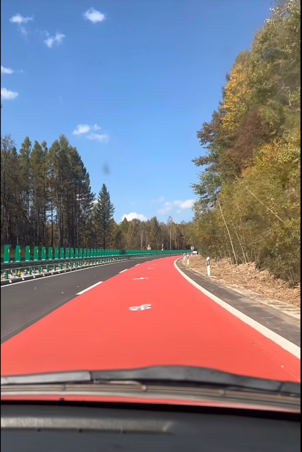 靠近百年部落景点的240米路段,你会听到《红太阳照边疆》的悠扬旋律;而2公里外的对向车道,《阿里郎》的经典曲调则在等待着“对唱”的车辆。