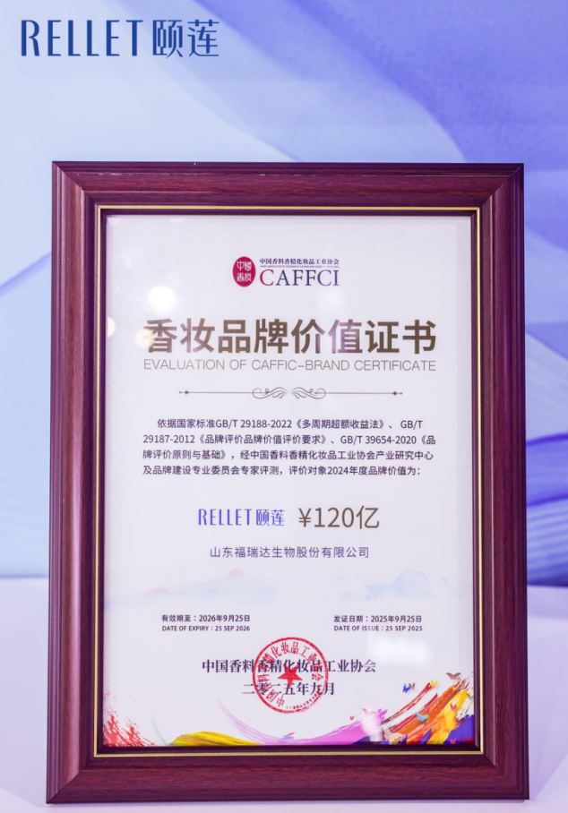 2025年9月25日,在中国香料香精化妆品工业协会主办的“2025中国香妆品牌价值大会”上,福瑞达生物股份旗下颐莲品牌凭借卓越的市场表现与品牌影响力,正式获得“香妆品牌价值证书”,其品牌价值评估突破120亿元,成为国内香妆行业标杆性成果。