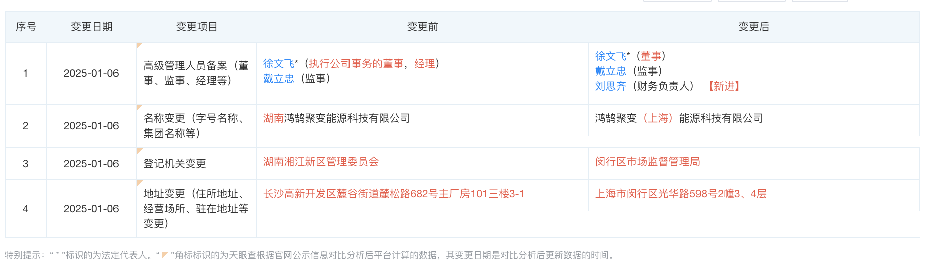 该公司曾用名为湖南鸿鹄聚变能源科技有限公司。从其工商信息变更来看,该公司从2025年初开始有了较大变化:从一家湖南公司变更为上海公司,并新进了财务负责人刘思齐。而圣湘生物亦是一家总部位于湖南长沙的体外诊断整体解决方案提供商。