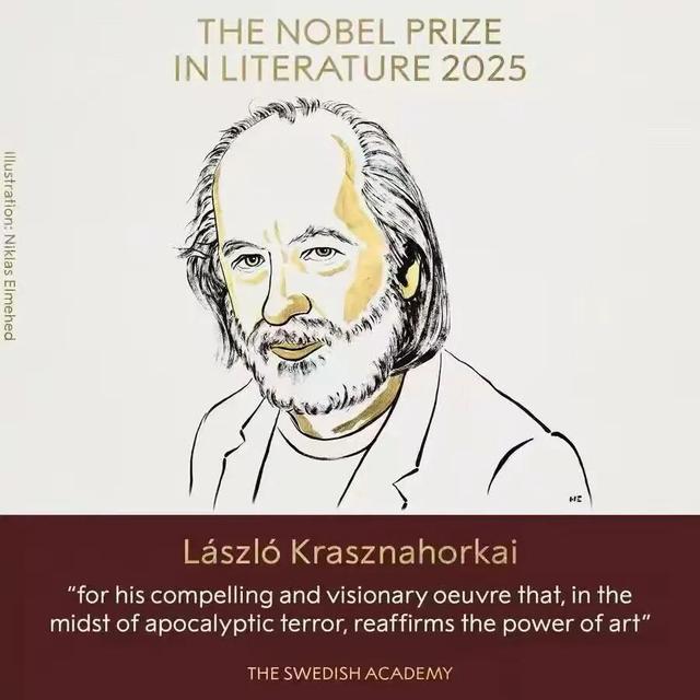 据诺贝尔奖官方网站消息:瑞典文学院于北京时间10月9日19点宣布了2025年诺贝尔文学奖,由匈牙利作家拉兹洛·克劳斯纳霍尔考伊(László Krasznahorkai)摘得,获奖理由:“他那震撼人心、富有远见的创作,在灾难与恐惧的时代,重申了艺术的力量。”