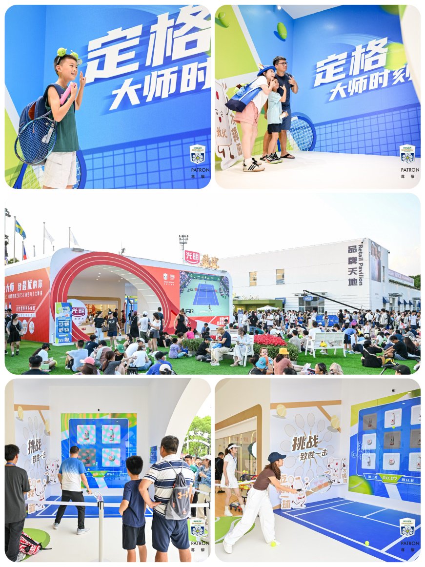 拍照互动区的网球版“人生四格照”成了球迷们的“打卡必选项”,拿起网球道具、摆出挥拍姿势,按下快门就能一键生成带着赛事记忆的专属合影;挑战区的“光明网球大师击球挑战赛”更让网球爱好者过足瘾,模拟赛场还原真实赛事场景,瞬间点燃竞技热情,而排行榜首位的选手还能收获张之臻联名球拍套装。