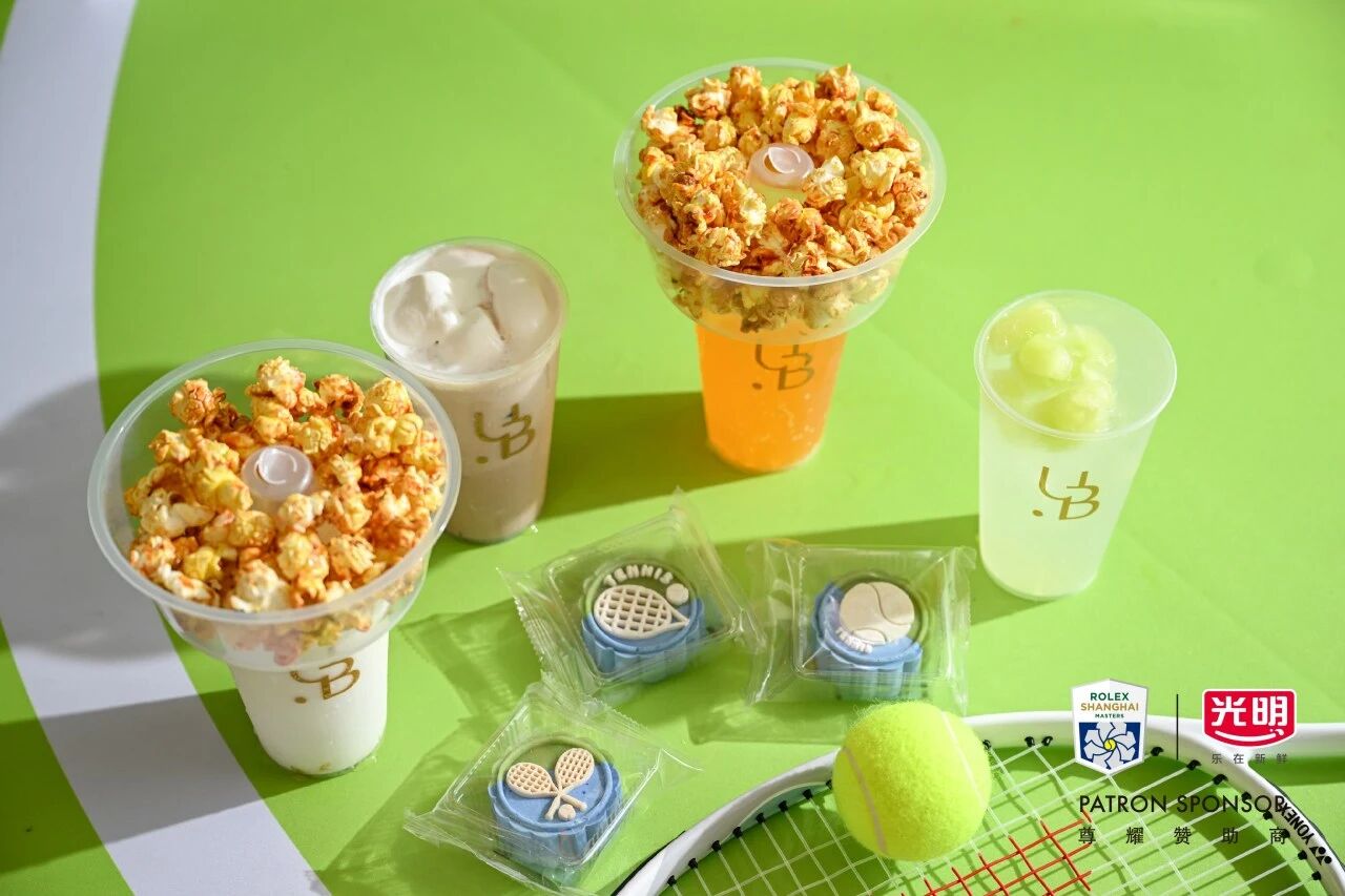 味觉体验同样充满惊喜。四款以高品质鲜奶为基底的大师赛专属特调,口感清爽又解腻,为观赛注入满满活力;限定网球文创雪糕更是将赛场记忆融入味蕾,雪糕造型复刻旗忠网球中心经典白玉兰轮廓,让观众尽享“边吃雪糕边看比赛”的畅快。