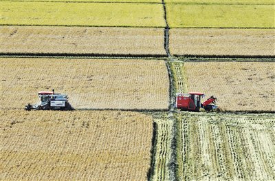 在位于黑龙江省双鸭山市的北大荒集团友谊农场有限公司,机械设备在进行水稻收获作业(9月23日摄)。 眼下,全国产粮第一大省黑龙江省各垦区粮食作物长势喜人,“中国粮仓”展现出一派丰收图景。今年以来,黑龙江省聚焦粮食单产与品质提升,通过提高耕作水平不断提高粮食综合生产能力,夯实粮食丰收基础。2025年,北大荒农垦集团有限公司秋收总面积达4677.20万亩。截至10月10日,已收获3969.03万亩,完成84.86%。 新华社记者 王松 摄