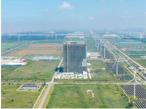 ▲位于江苏南通如东县的中国首个重力储能示范项目——中国天楹10万千瓦时重力储能项目。据悉,该项目正在进行调试,并网投运后,不仅能为如东“风光”新能源发电提供配套储能,在更大时间和空间范围内调节互济,实现高效利用,还可以参与电网调频调峰服务,为构建新型电力系统发挥支持作用。