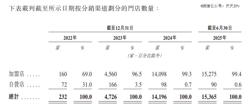 据悉,万辰集团全国门店中有15275家加盟店,占比达99%以上,直营店则不到100家。同样值得一提的是,从2022年到2025年期间,其门店在三线及其他低线城市的占比不断增加,并超越一二线城市,足以可见其下沉市场的布局在不断展开。