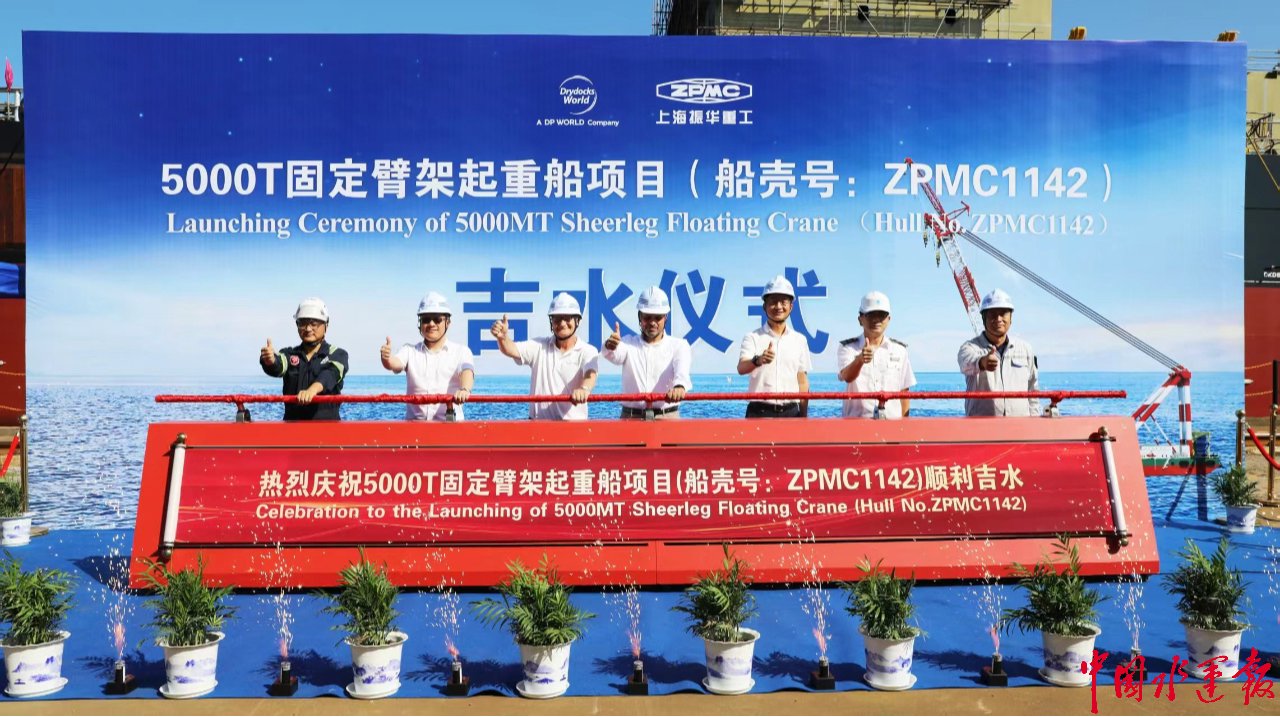 10月11日,在南通海事局全程监管维护下,上海振华重工集团为迪拜干船坞世界公司(Drydocks World)建造的5000吨固定臂膀起重船在振华启东海工顺利吉水。
