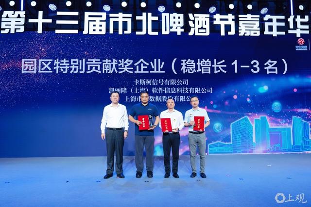 当晚的活动为2024—2025年度“园区经济贡献TOP50”企业颁发荣誉。卡斯柯信号有限公司、凯丽隆(上海)软件信息科技有限公司、上海市大数据股份有限公司三家单位荣获“稳增长特别贡献奖”。市北高新集团负责人为喜大、金保信、在途、时代聚能、法本、智殷自动化、新智具身智能、智行鸿宇、电装数字科技、鸿信医药等园区新生力量颁发“市北户口本”,欢迎他们加入市北创新生态圈。