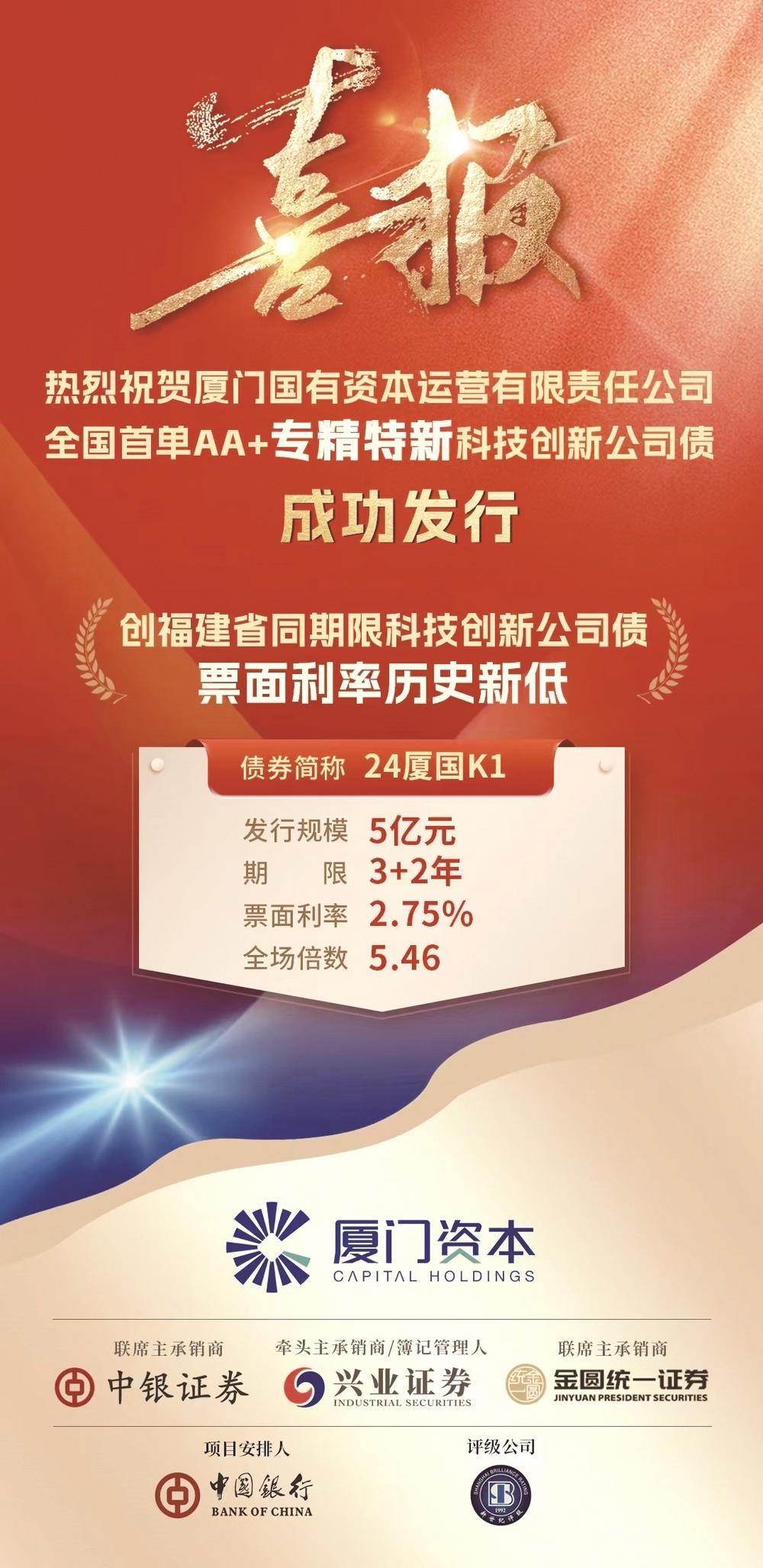 债权融资同样成果斐然。兴业证券累计助力福建科技型企业债券融资超百亿元。其中,牵头主承的厦门国资公司科创债,创下福建省同类债券历史最低利率,为支持“专精特新”企业发展树立了可复制的“样板”。