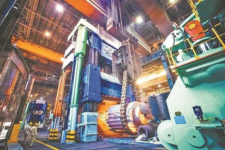 中国一重研发制造的锻造水压机。一年来,中国一重以创新驱动产业升级,先后攻克700T级钢锭均质化制造、超临界水氧化反应器控制系统、短流程无头轧制生产线高速飞剪设备等25项关键技术,共计开发出高碳马氏体支承辊等9项新产品,以“国之重器”筑牢制造强国根基。本报资料片