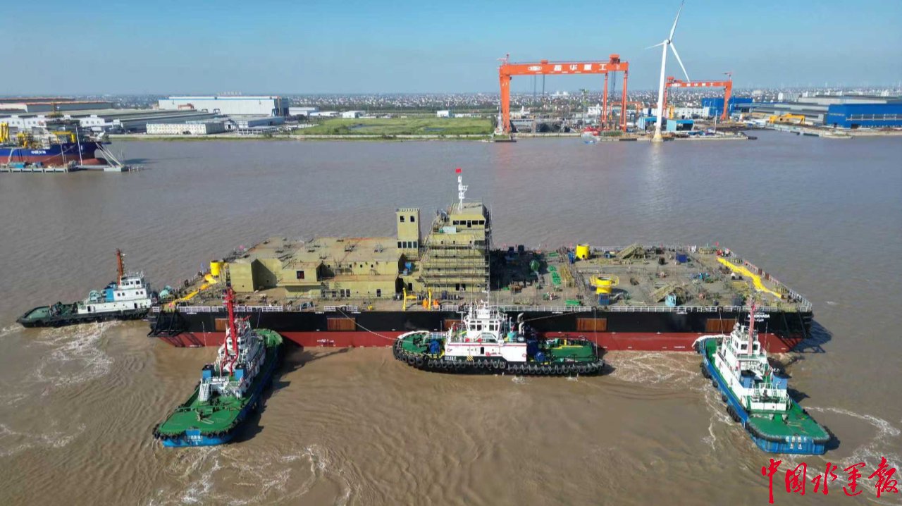 10月11日,在南通海事局全程监管维护下,上海振华重工集团为迪拜干船坞世界公司(Drydocks World)建造的5000吨固定臂架起重船(见图)在振华启东海工顺利吉水。
