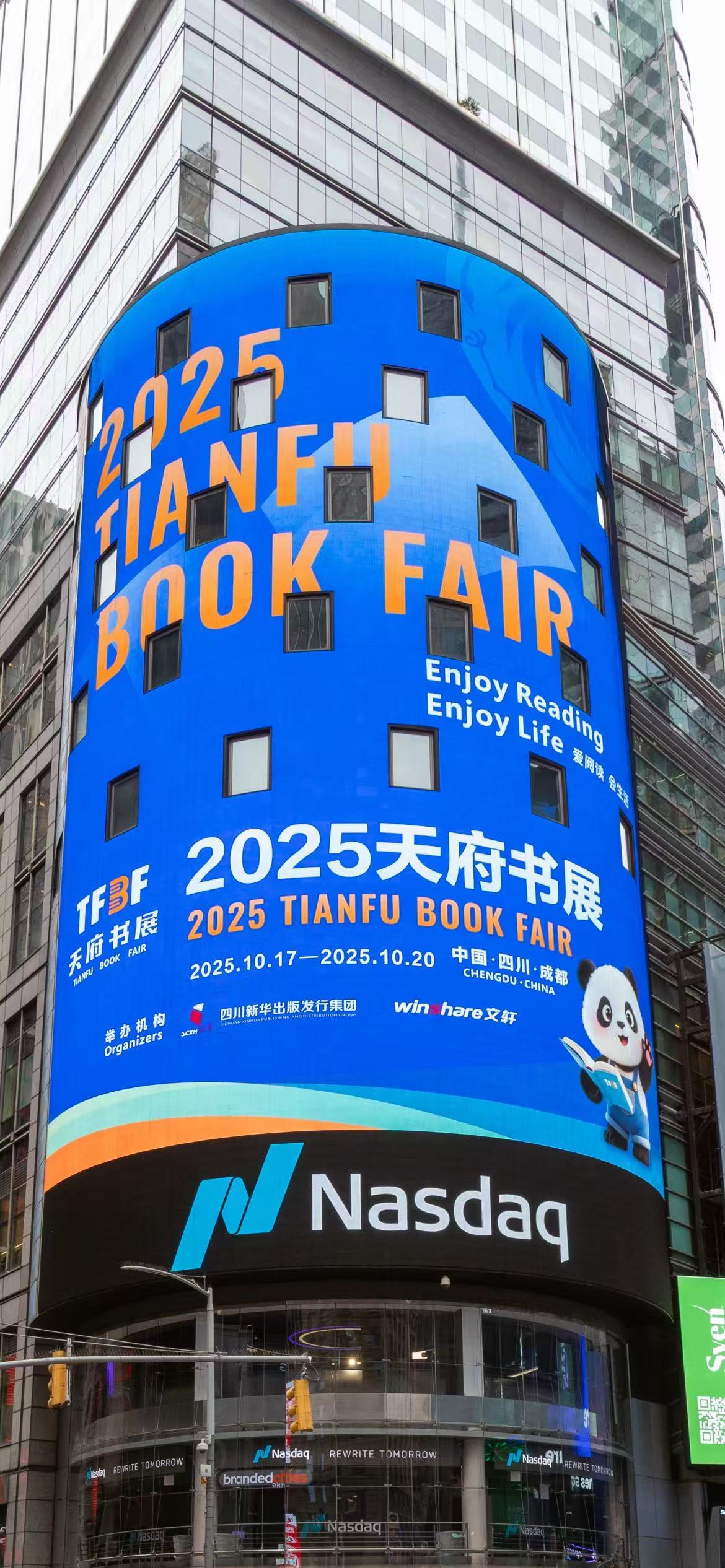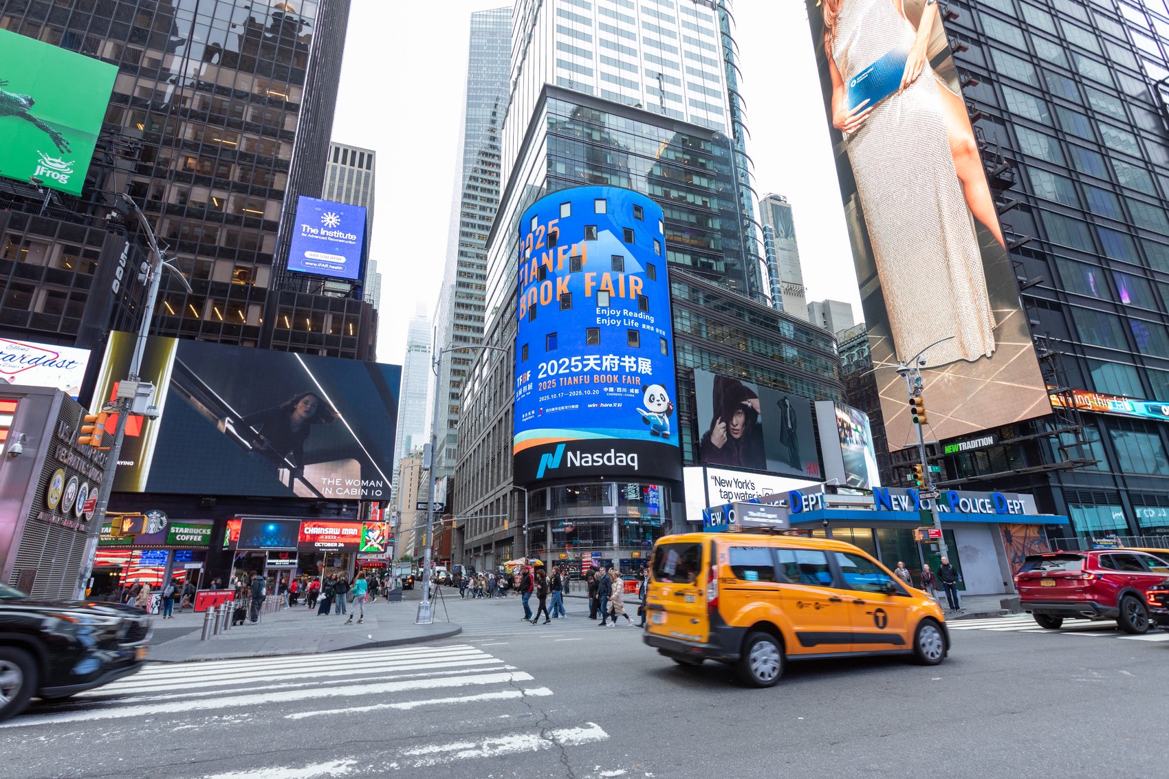 当纽约时代广场的霓虹与天府之国的书香在纳斯达克大屏交汇,这场跨越太平洋的文化对话已如约而至。2025天府书展启幕前夕,主题海报再度亮相“世界十字路口”——在948平方米的巨幕上,“锦绣天府”的文化魅力随光影流转,向日均百万的全球访客递出四川文化新名片,传递中国阅读的温度与力量。