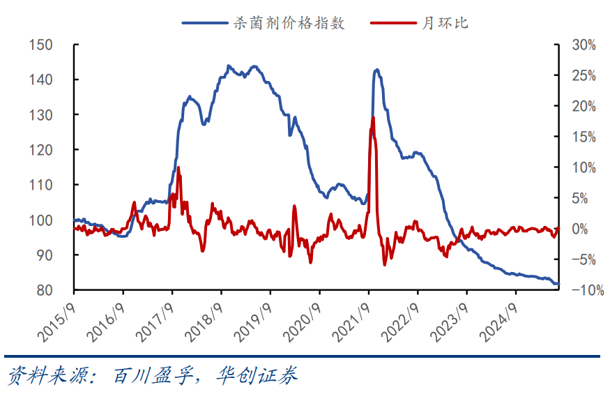 两家公司业绩高增,主因是核心产品涨价,如,利民股份的代森锰锌、先达股份的烯草酮,市场售价较去年同期明显上涨。不过,若观察农药整体价格,则目前仍在低谷,边际有所改善,不同产品严重分化。