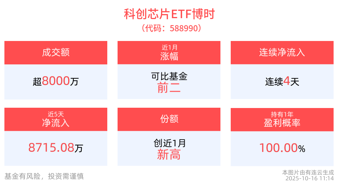 流动性方面,科创芯片ETF博时盘中换手11.36%,成交8287.95万元,市场交投活跃。拉长时间看,截至10月15日,科创芯片ETF博时近1月日均成交1.81亿元。