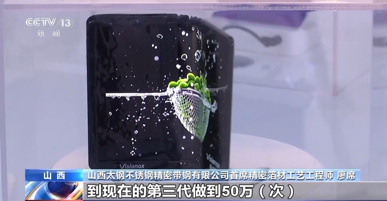 山西太钢不锈钢精密带钢有限公司首席精密箔材工艺工程师 廖席:折叠屏最开始没有手撕钢的时候,大概是4到5万次,加了手撕钢衬底之后,第一代大概是20万次,到现在的第三代做到50万,未来可能会继续增加到80万到100万次。