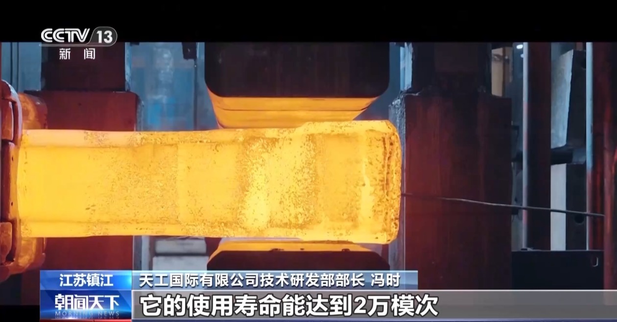 天工国际有限公司技术研发部部长 冯时:用传统的方法去制备的时候,它的使用寿命大概只有6000模次就需要去更换了,通过粉末冶金的产品,它的使用寿命能达到2万模次,未来有希望达到5万或者8万模次。