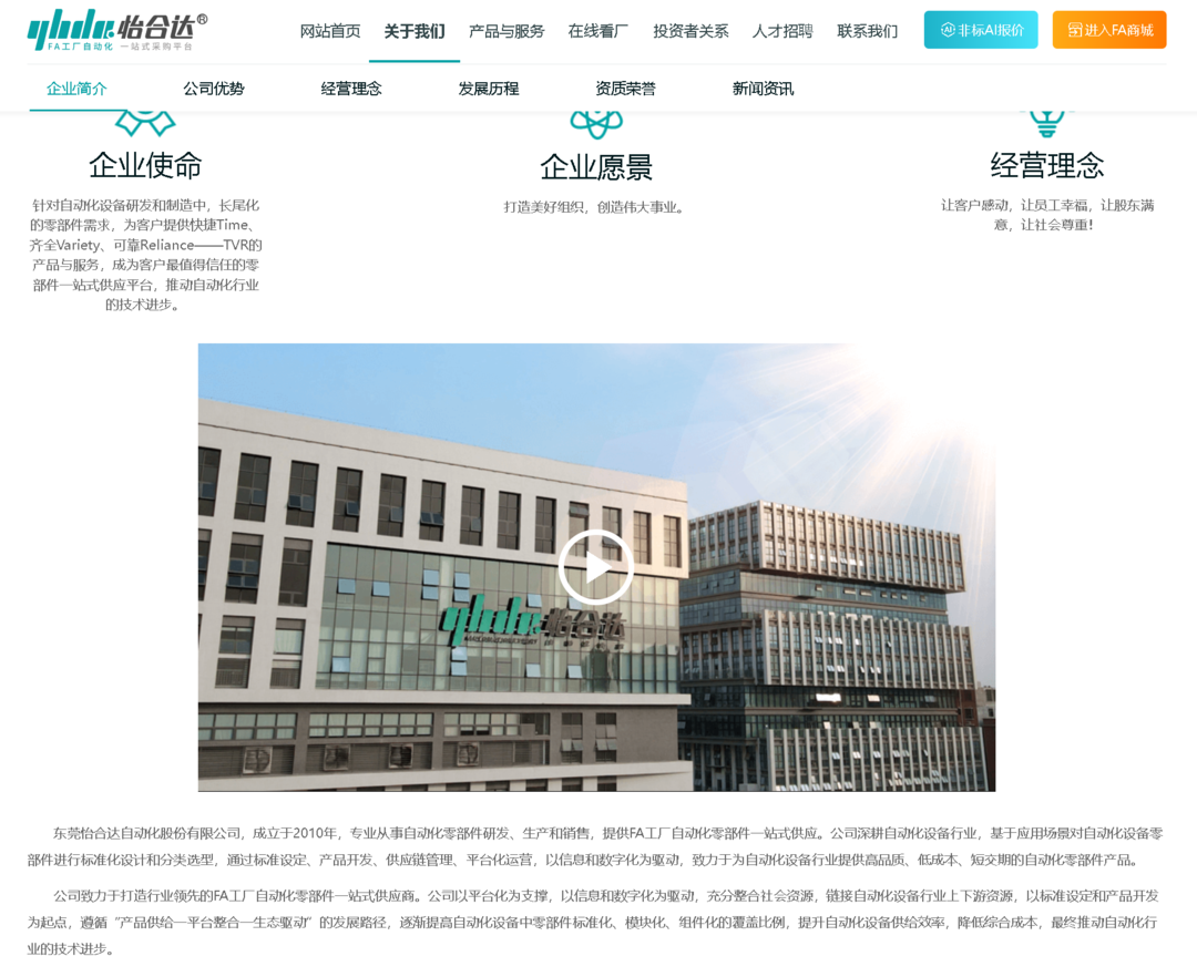 东莞怡合达自动化股份有限公司,成立于2010年,专业从事自动化零部件研发、生产和销售,提供FA工厂自动化零部件一站式供应。公司2021年在深圳创业板上市(怡合达 301029)。