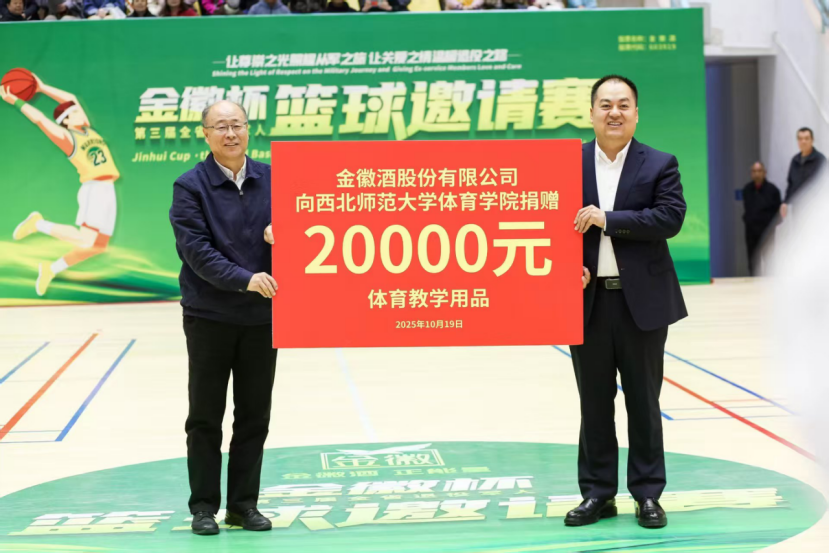 崔进泰为冠军得主临夏州退役军人事务局代表队颁奖,黄小东为亚军得主金徽酒代表队颁奖,蒋建民为季军得主兰州新区退役军人事务局代表队颁奖,相关领导为获得优秀奖的团队及个人颁发荣誉奖牌。金徽酒股份有限公司向西北师范大学体育学院赠送二万元体育教学用品。
