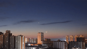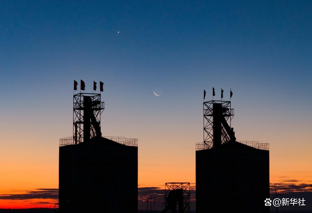 10月20日在黑龙江省齐齐哈尔市拍摄的启明星伴月。新华社发(王勇刚摄)