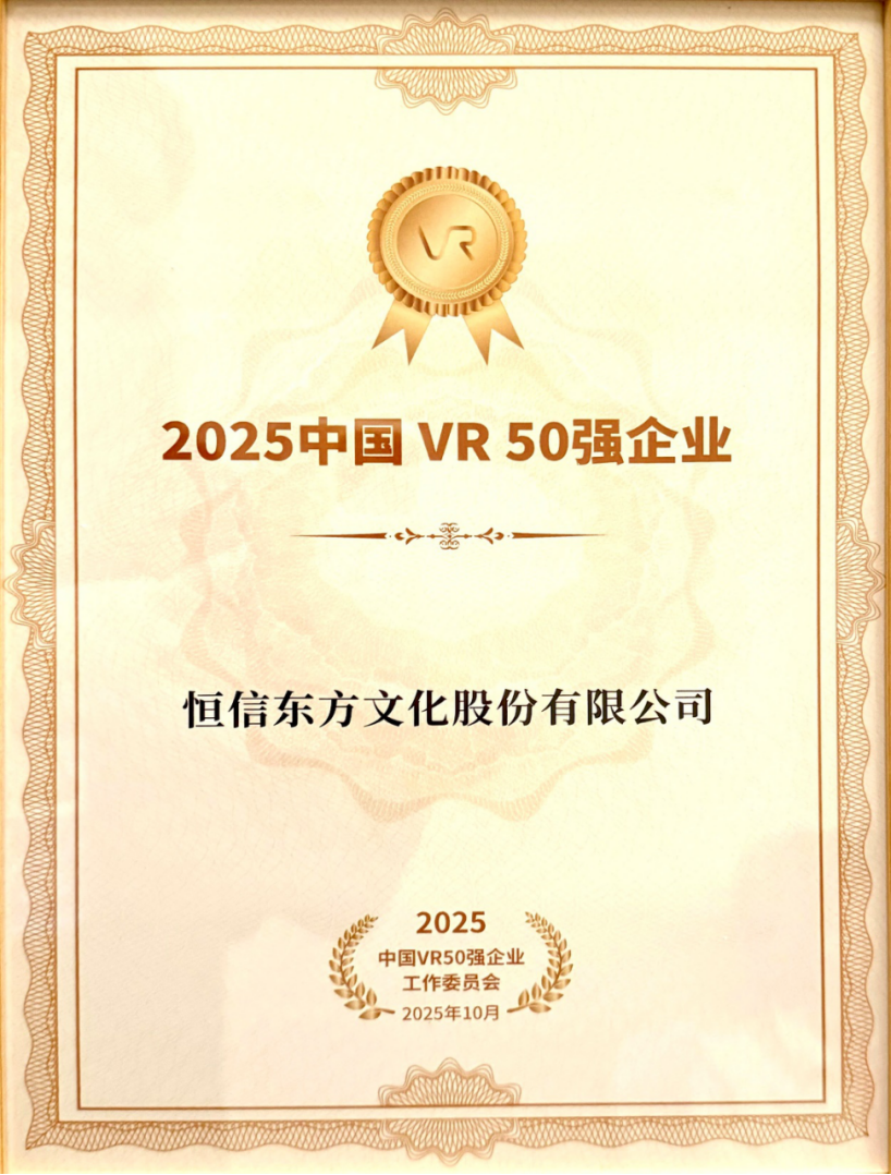 会上揭晓了“2025中国VR50强企业”名单,恒信东方(维权)凭借多年在虚拟现实领域的技术积淀,从全国众多优秀企业中脱颖而出,五度蝉联“中国VR50强企业”,其核心竞争力与未来发展潜力获得业内高度认可。