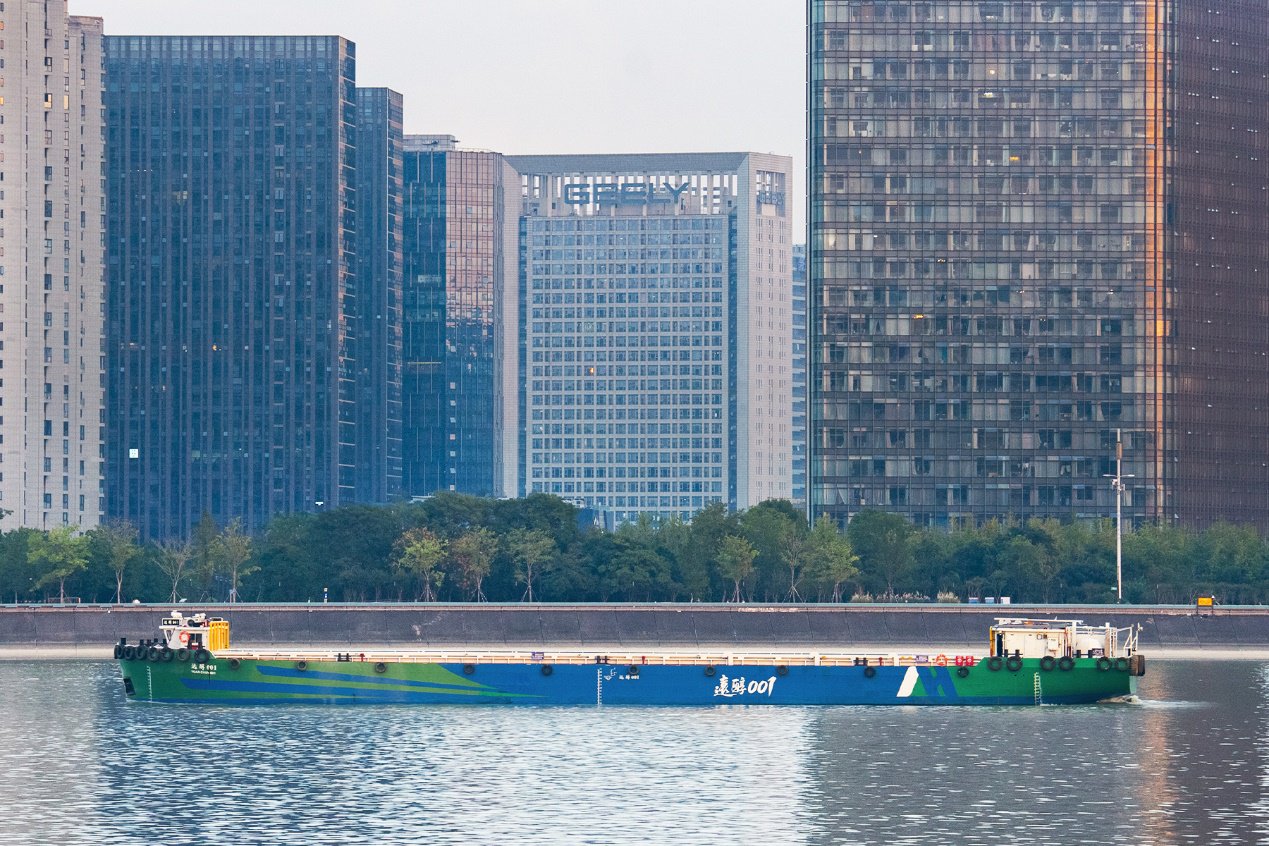 2025年10月20日,黄浦江畔的上海港罗东集装箱码头,全球首艘醇氢电动集散两用船“远醇001号”成功首航,标志着全球航运绿色转型迎来关键节点。“远醇001”搭载了吉利远程新能源商用车自主研发醇氢电动系统,也标志着实现液态新能源从陆地交通到水上航运的跨界落地。