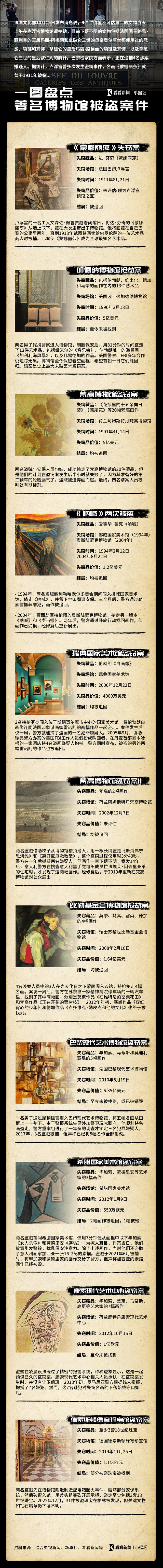 小据场丨《蒙娜丽莎》也曾失窃 一图盘点著名博物馆被盗案件