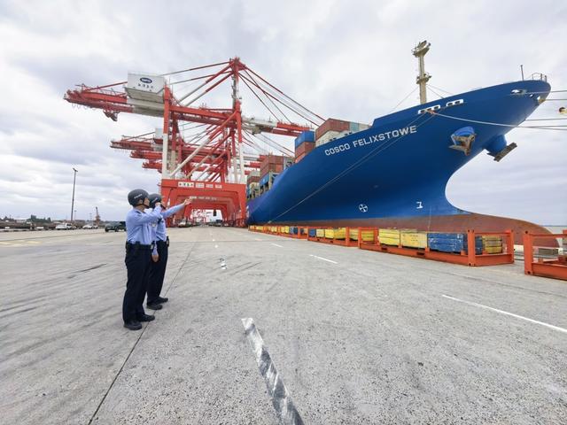 近期,继来自秘鲁、南非等国家的进博会展品海运抵沪后,上海港又迎来新西兰等国家的进博会展品。10月21日11时许,搭载第八届进博会海运展品的集装箱货轮“中远费力克斯托”轮靠泊上海外高桥口岸。上海边检机关联合口岸单位为载运进博会展品的船舶开通“绿色通道”,助力第八届进博会展品安全准时入境布展。