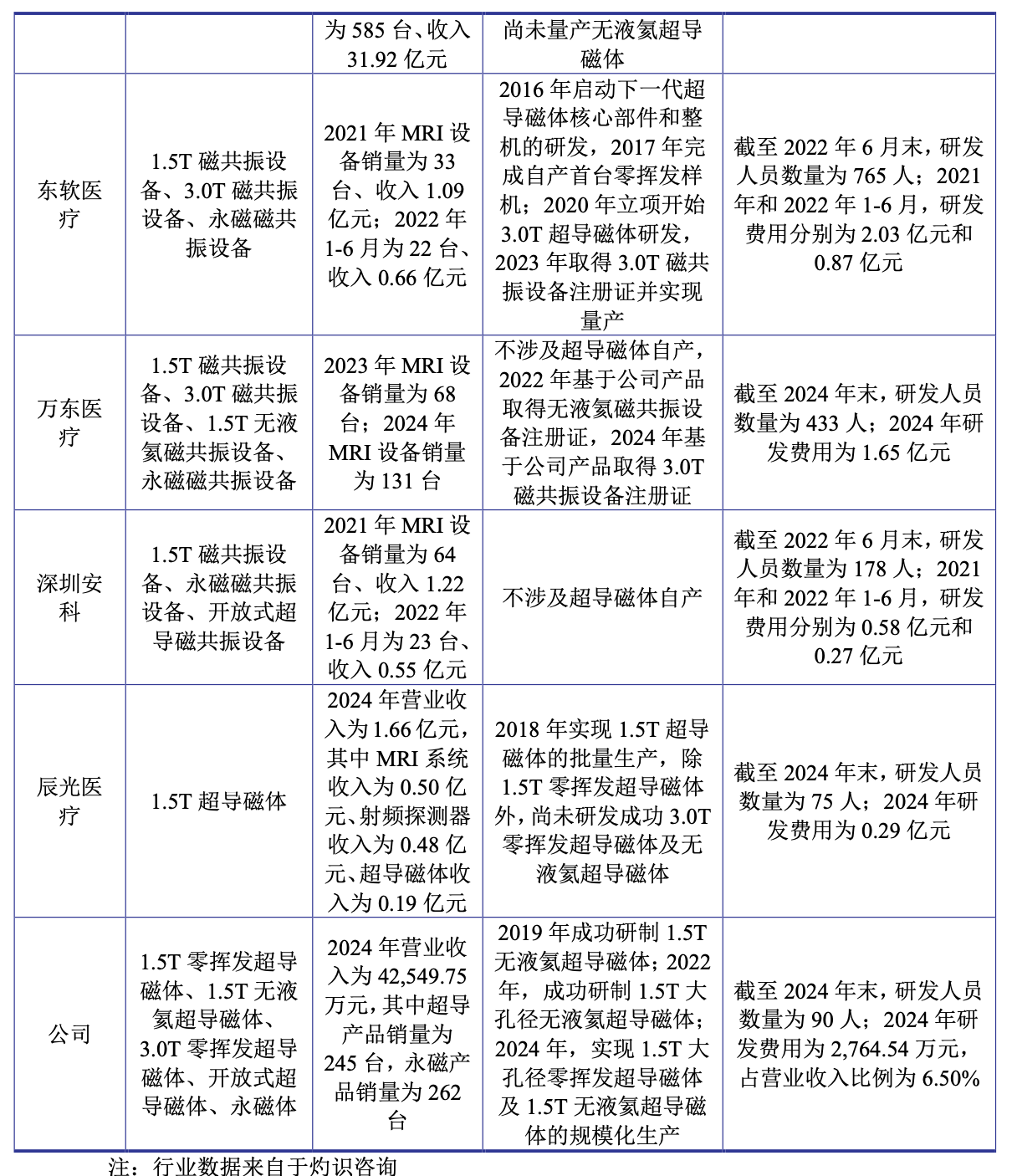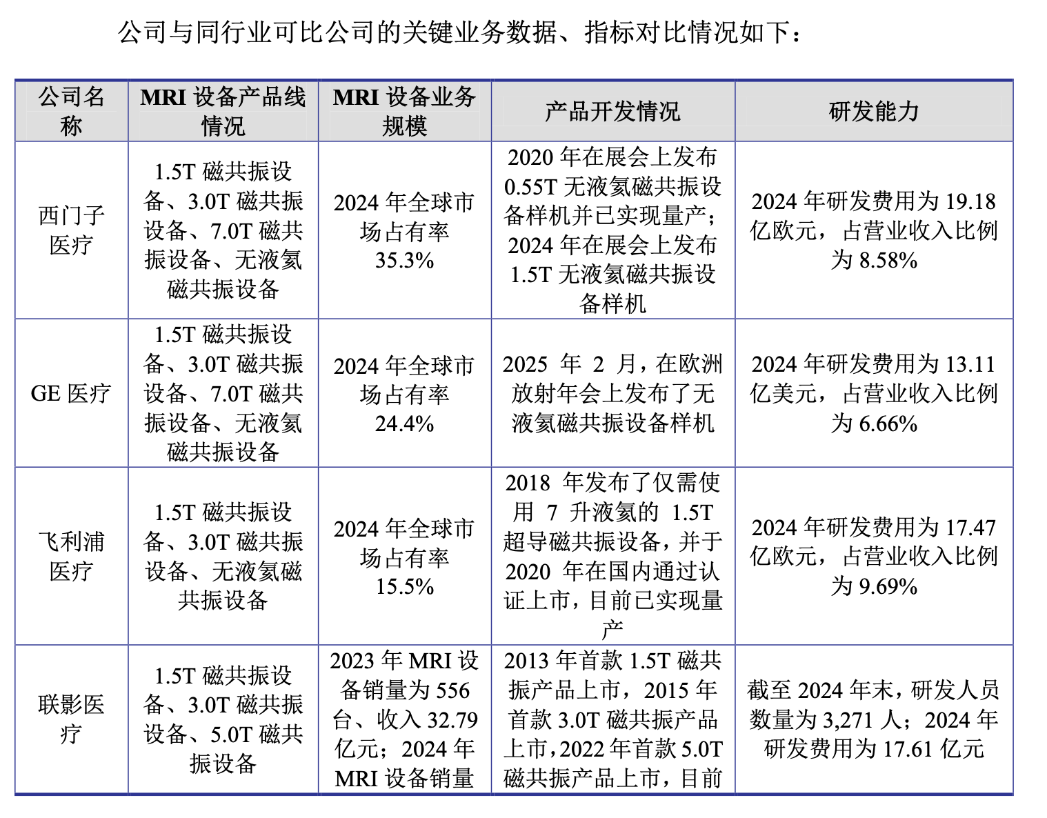 行业竞争方面,西门子医疗、GE医疗、飞利浦医疗、联影医疗、东软医疗、万东医疗、朗润医疗等均为健信超导的同行业可比公司。