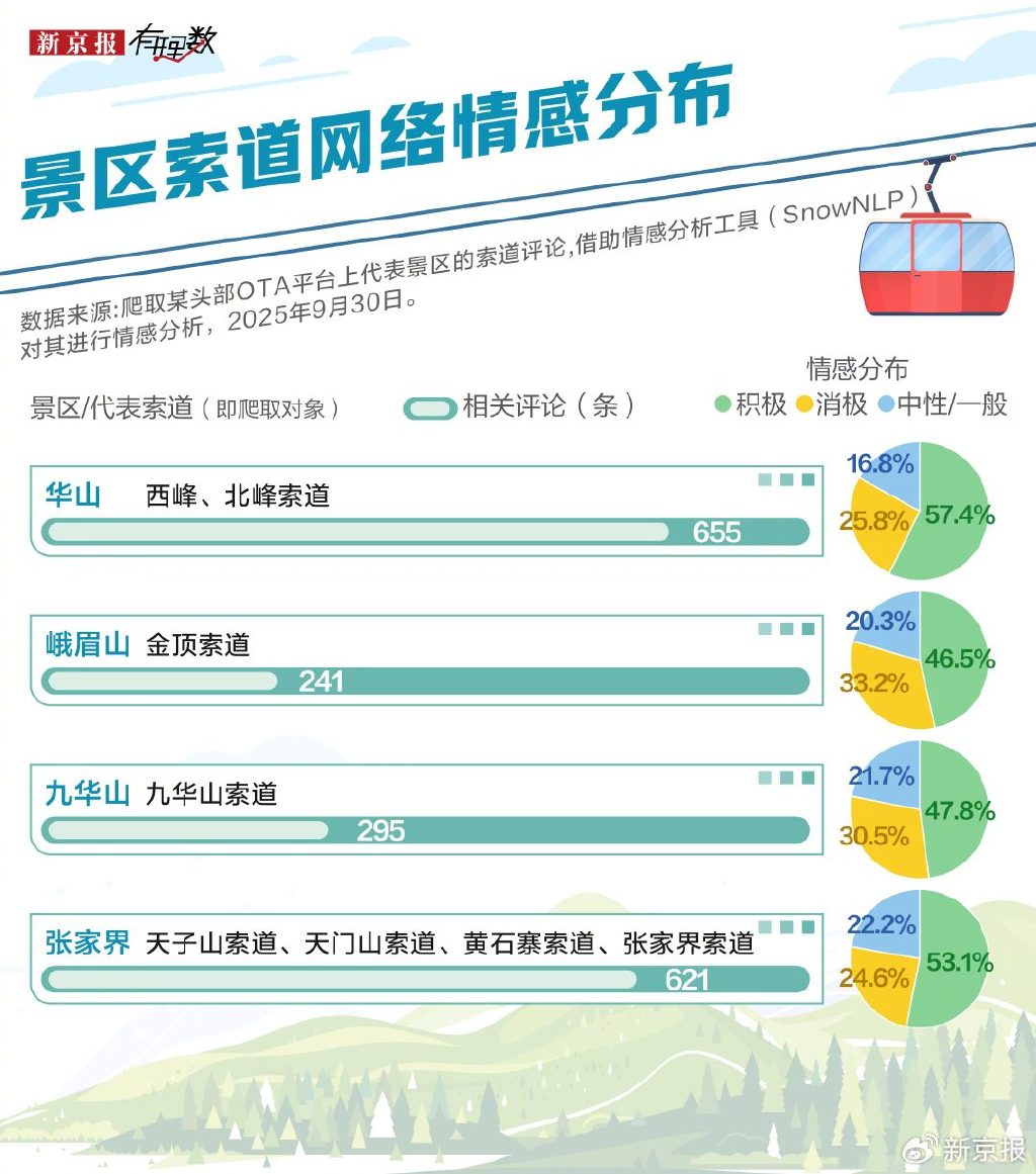 但同时,各景区索道也有不少负面评价,峨眉山、九华山的负面评价占比均超过30%,核心争议点集中在“价格贵”和“运营管理跟不上”。