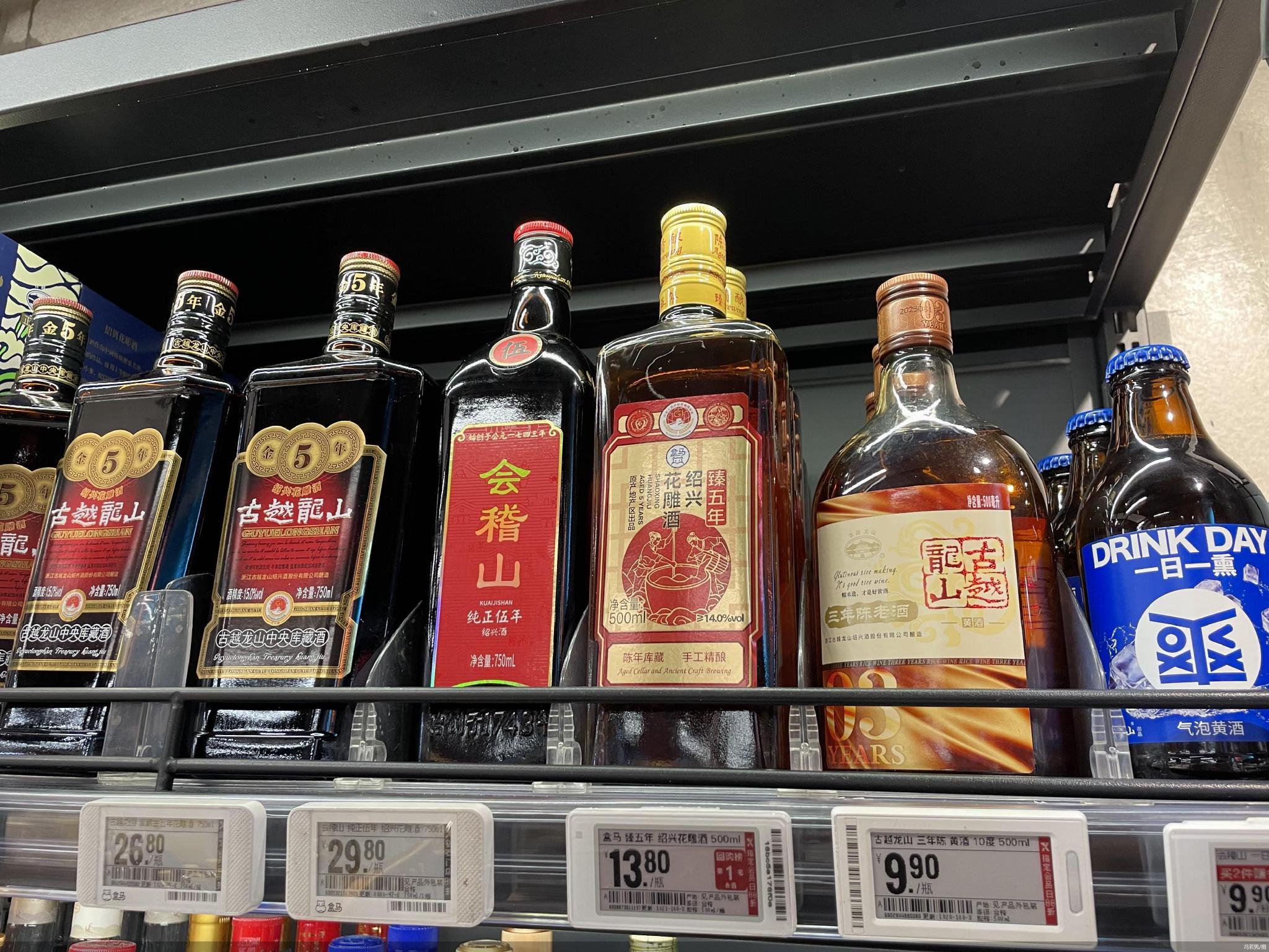 右安门附近的盒马鲜生店内,与大闸蟹产品相匹配的便是盒马鲜生自有品牌产品“盒马臻五年绍兴花雕酒”。据了解,此前盒马曾推出两款黄酒产品分别为“螃友”“臻五年绍兴花雕酒”。盒马方面曾表示,“臻五年绍兴花雕酒”是盒马首款定位常规的黄酒产品。走访过程中,北京商报记者在盒马鲜生多家门店均未找到“螃友”产品。