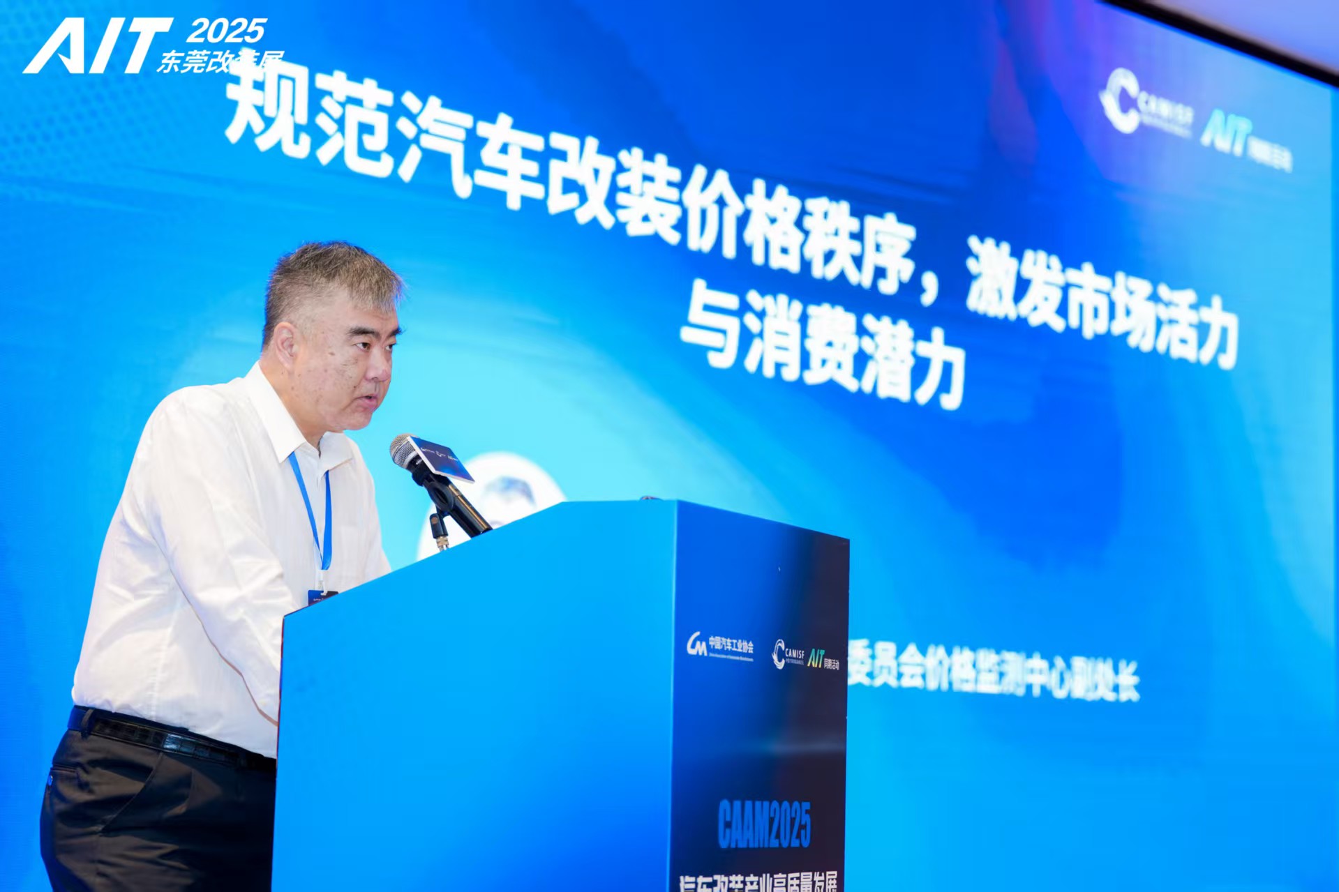 图:工业和信息化部产业政策司原副司长、巡视员辛仁周发表演讲,阐述政策体系对产业升级的关键作用政策落地的成效,最终体现在市场秩序的优化升级。国家发展改革委价格监测中心工业品处副处长程晓东从规范市场秩序的角度展开分享。他表示,有关部委已明确将汽车后市场纳入创新试点范围,正视汽车改装市场的巨大潜力,同时推进全国汽车全生命周期信息平台建设,为改装市场规范发展奠定基础。同时他呼吁在新经济环境与发展形势下,行业需协同发力,进一步完善法规、加强监管,共同推动汽车改装车市场有序发展,为消费者提供更安全、更环保、个性化的改装服务,助力我国汽车后市场持续进步。
