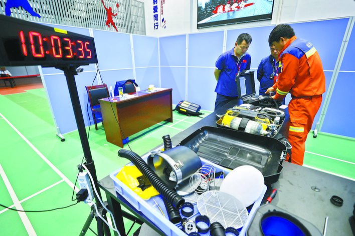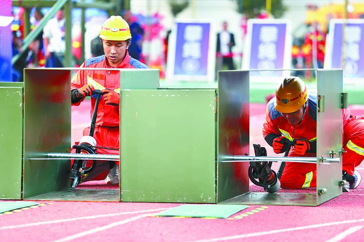 “我们去年参加了国际矿山救援技术竞赛。相比之下,本届全国矿山救援技能竞赛对作业规范的要求更高。因为操作规范是安全救援的前提。”国家矿山应急救援山东能源队大队长、本届竞赛裁判组副裁判长任晓东说。本届竞赛评分更为精准,裁判会综合考量完成速度、流程规范、技术细节、安全意识和团队配合等方面情况。“提前一分钟打通,对里面的人来说就会早一分钟被解救。所以在规定的时间内,用时越短,加分越多。但如果机械设备的操作不符合安全操作规程,就会被扣分。”国家隧道应急救援中铁二局昆明队总工程师、本届竞赛隧道组的裁判组组长王献泽说。精准化的评分看似苛刻,却能引导救援队伍在训练中追求效率的同时,将安全规范操作形成“肌肉记忆”,提升救援实战的安全性。