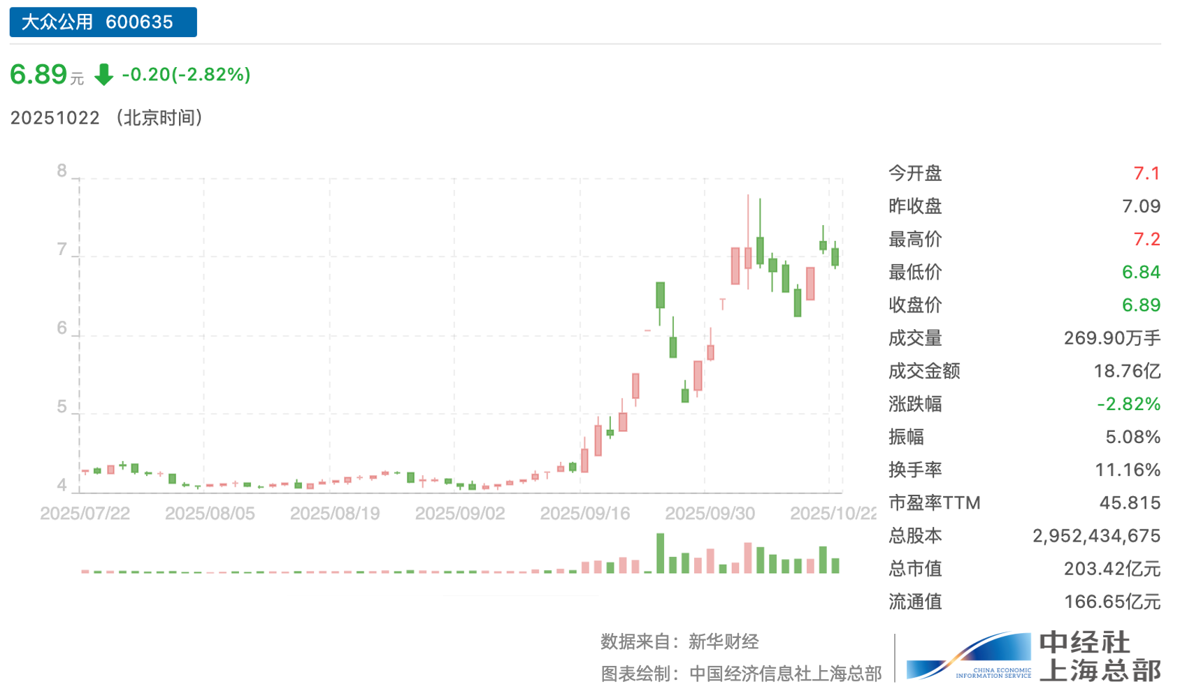 新华财经上海10月22日电(林郑宏、周西仑) 随着摩尔线程、宇树科技、沐曦股份等明星科技公司陆续开启IPO进程,A股参股IPO概念股吸引了众多市场资金的目光,其中上海本地公用事业企业大众公用(600635.SH)近期异军突起,一个多月来股价扶摇直上,较9月初低点累计上涨超过70%,成为参股IPO主题中的佼佼者。