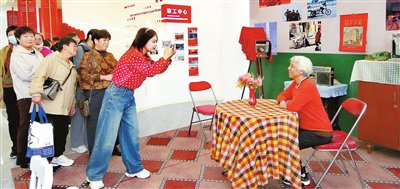 “好!唱得好!”在“今朝有戏”区域,天津艺术职业学院学生带来的经典戏曲选段引得满堂喝彩,不少戏迷老人跟着旋律轻声哼唱,陶醉其中。一旁的“花田影院”循环放映着《喜盈门》等老电影,身着旧时服装的工作人员穿梭其间,与老人们亲切互动,勾起了大家的集体记忆。“这个活动办得好!以前跟着闺女参加过年轻人的汉服游园,这次体验了一把咱老年人的‘穿越’秀,玩得过瘾!”年近七旬的李阿姨兴奋地说。
