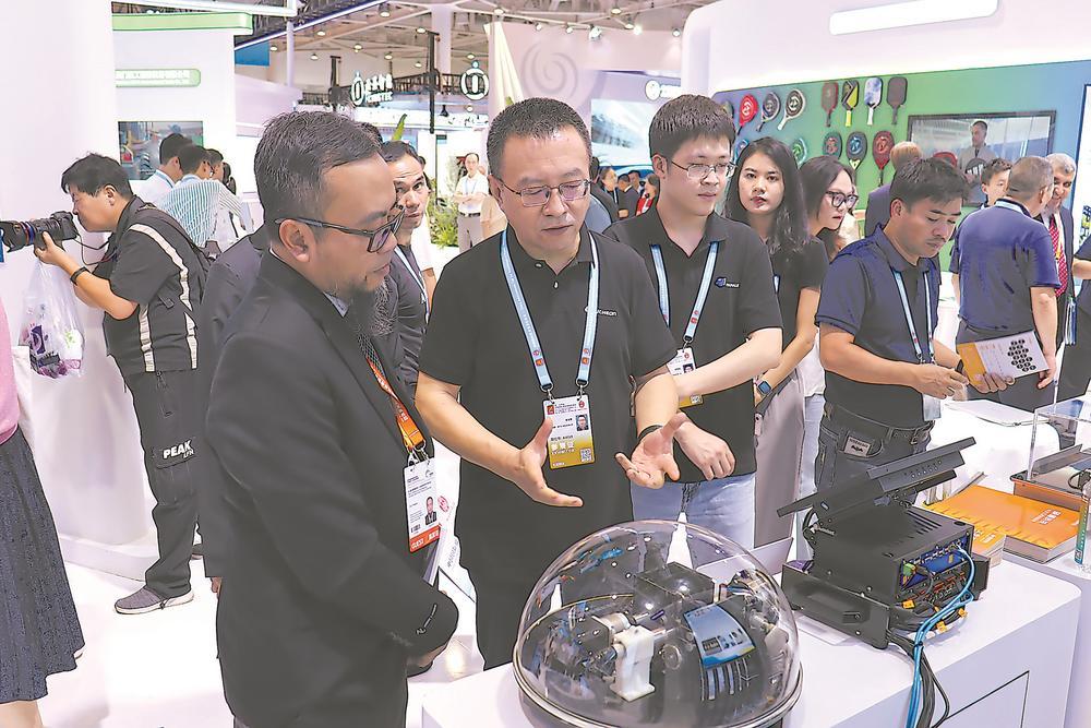 今年“9·8”投洽会现场,硕橙科技工作人员正在讲解设备智能运维系统的工作原理。