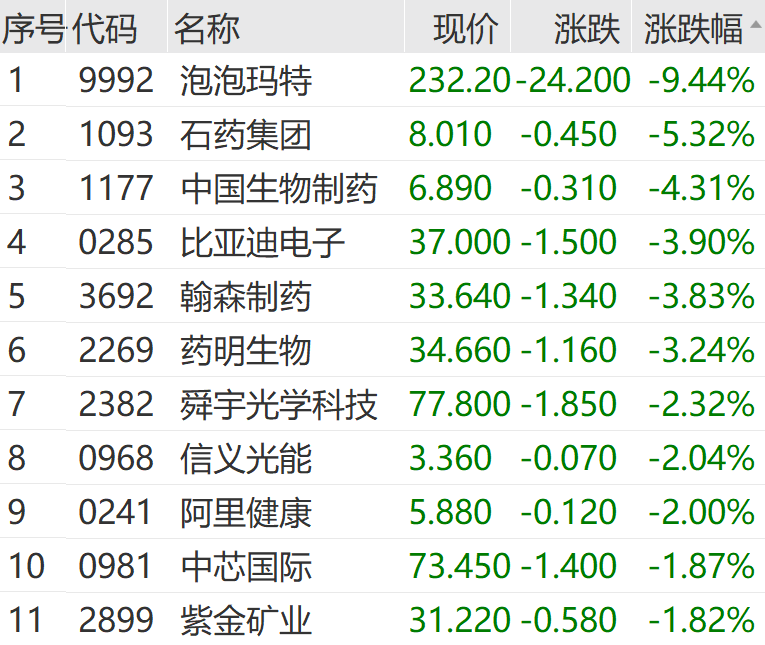 除泡泡玛特外,上午港股新消费板块整体走低。截至午间收盘,古茗跌超7%,蜜雪集团跌超5%,布鲁可跌超4%。